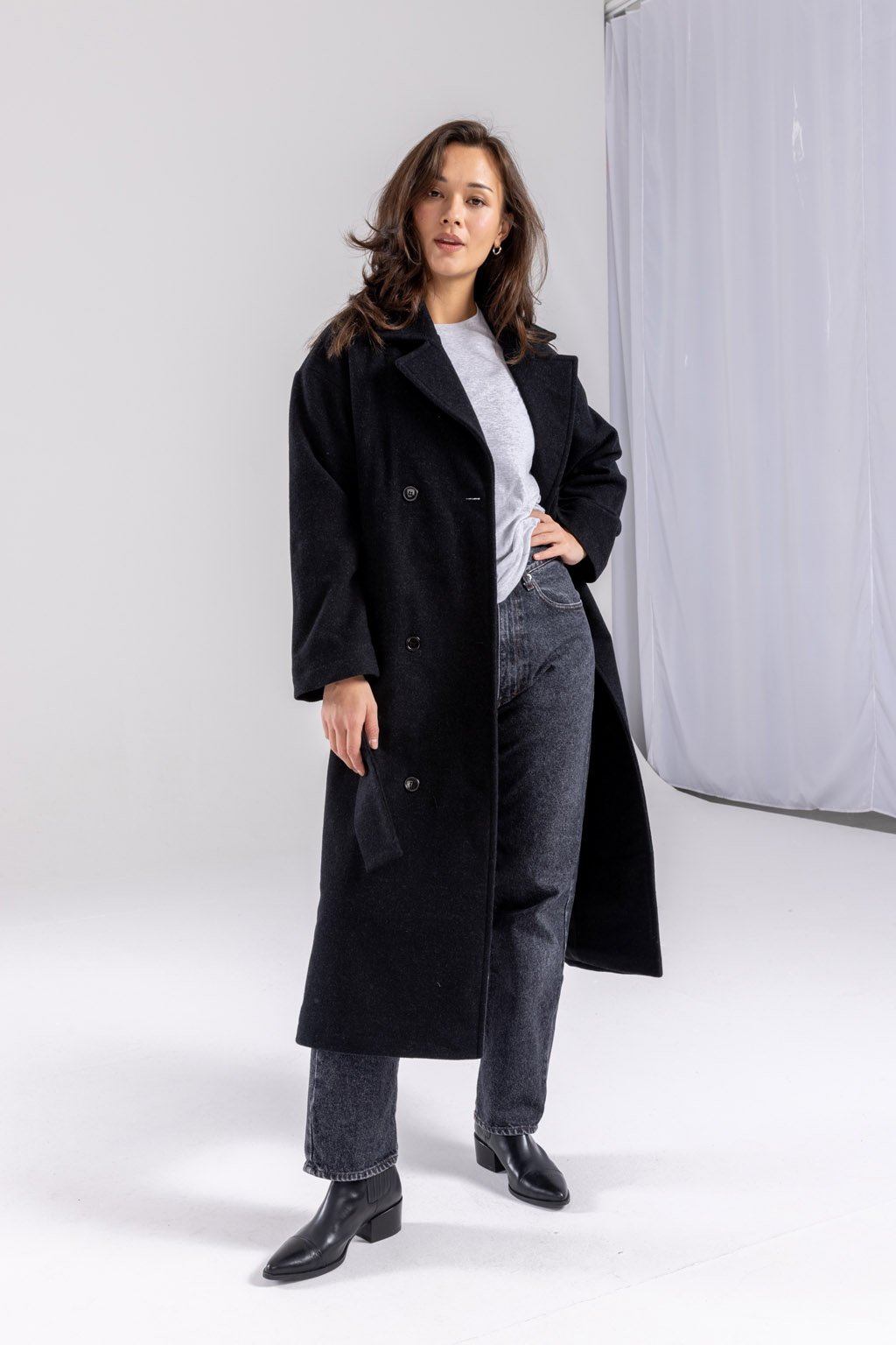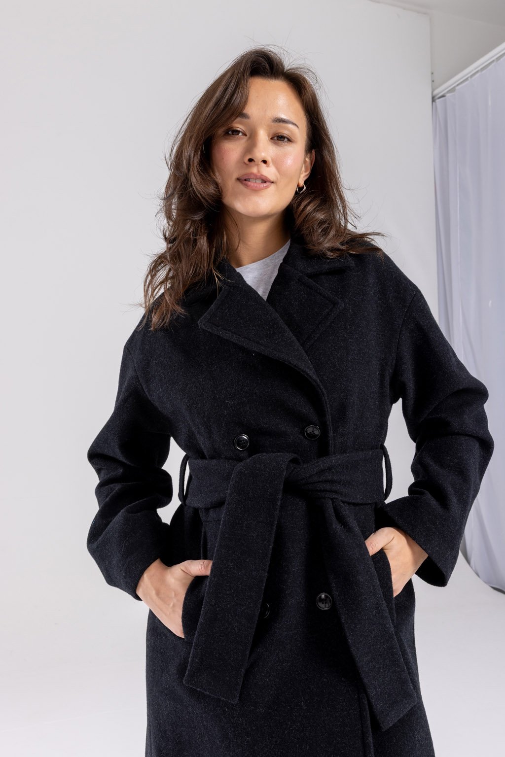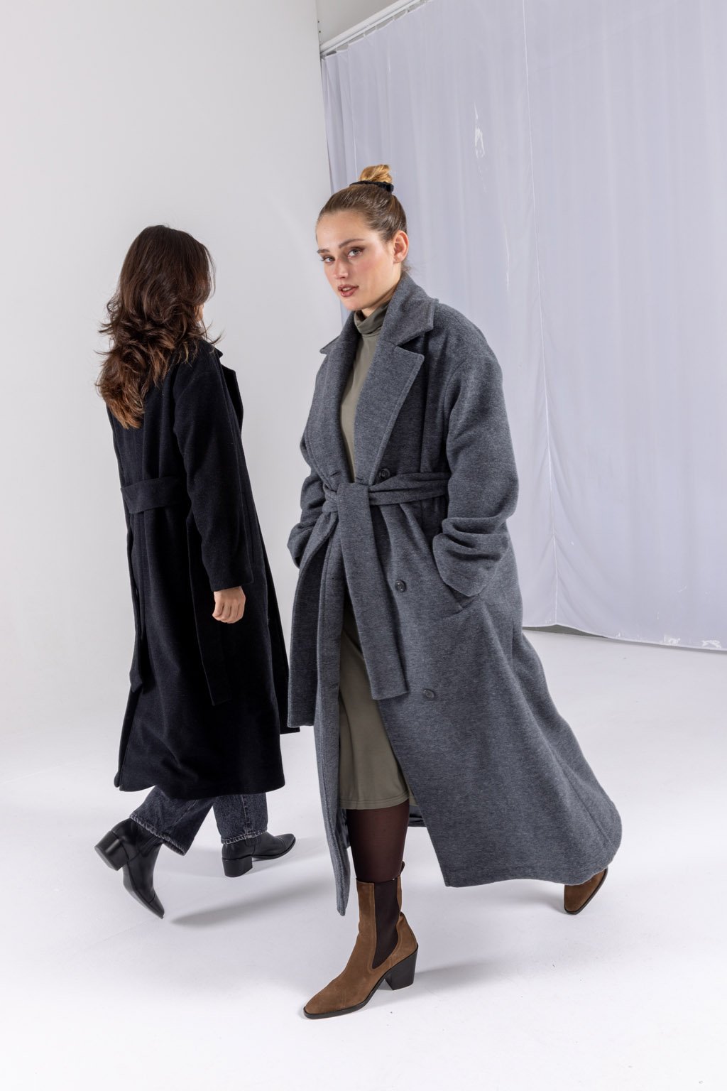 Náš masterpiece jménem ALEX, zimní kabát, co vás zahřeje. Dlouhý vlněný kabát řemeslného zpracování je vyroben z velmi kvalitní 80% italské panenské vlny s příměsí polyesteru. Doplněn je podsádkou z viskózové podšívky a knoflíky české výroby. Má nadčasový lehce oversize střih s dvouřadým zapínáním, délku do půli lýtek a přiloženou vázačkou podtrhnete pas. Kapsy pro váš komfort jsou samozřejmostí. Vyberte si z melíru světle šedého, šedého nebo černého.