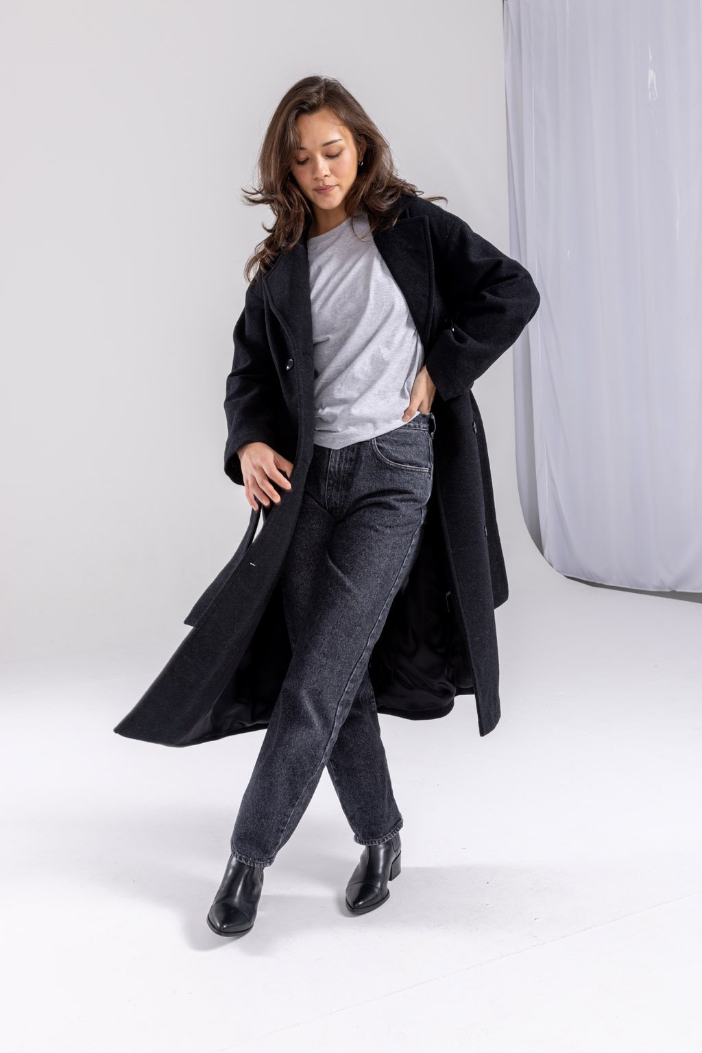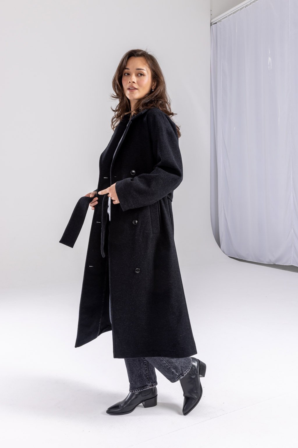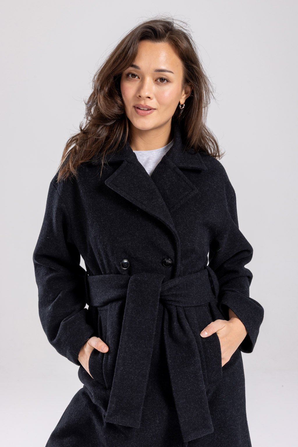 Náš masterpiece jménem ALEX, zimní kabát, co vás zahřeje. Dlouhý vlněný kabát řemeslného zpracování je vyroben z velmi kvalitní 80% italské panenské vlny s příměsí polyesteru. Doplněn je podsádkou z viskózové podšívky a knoflíky české výroby. Má nadčasový lehce oversize střih s dvouřadým zapínáním, délku do půli lýtek a přiloženou vázačkou podtrhnete pas. Kapsy pro váš komfort jsou samozřejmostí. Vyberte si z melíru světle šedého, šedého nebo černého.