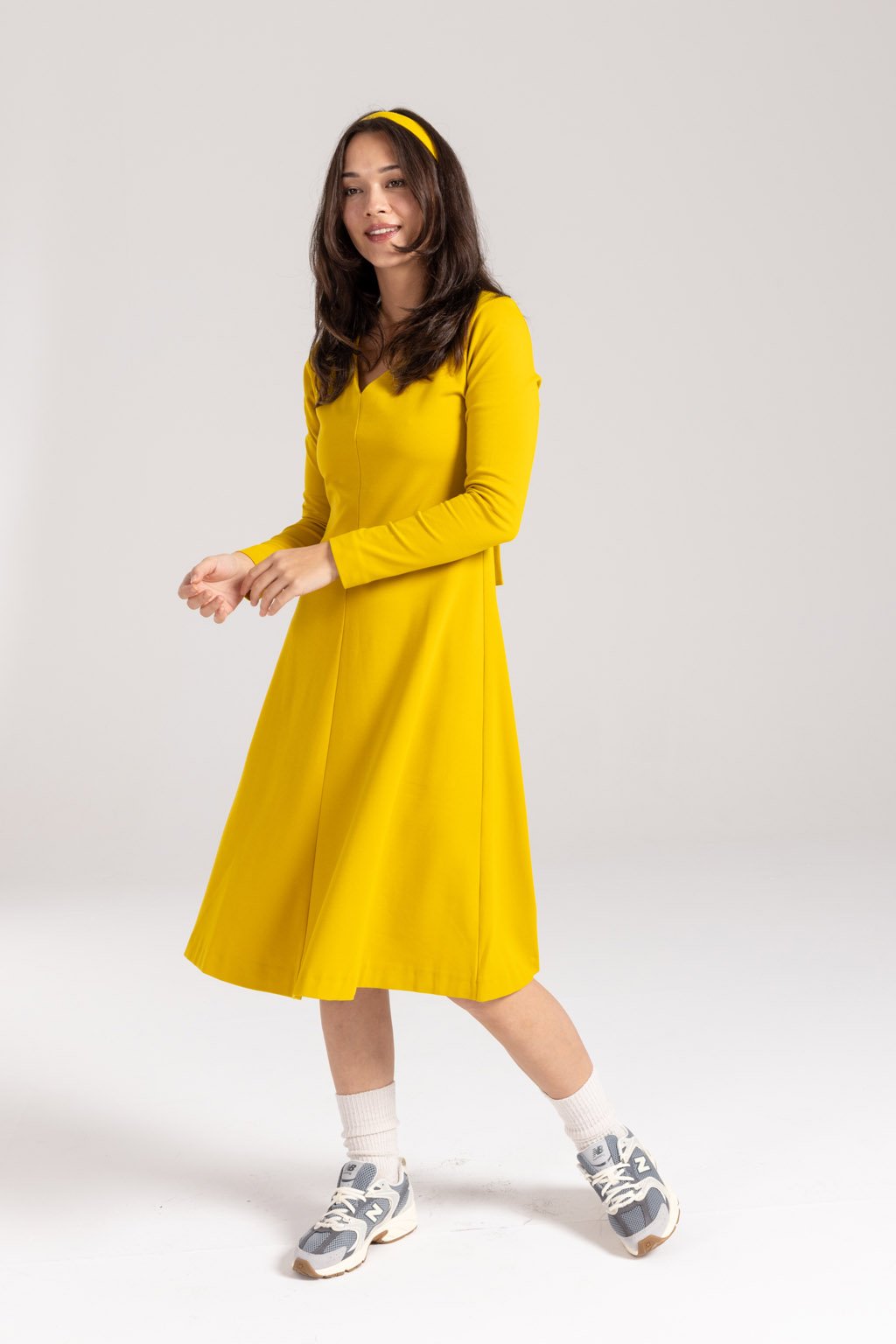 ANNA šaty s áčkovou sukní - Okrové