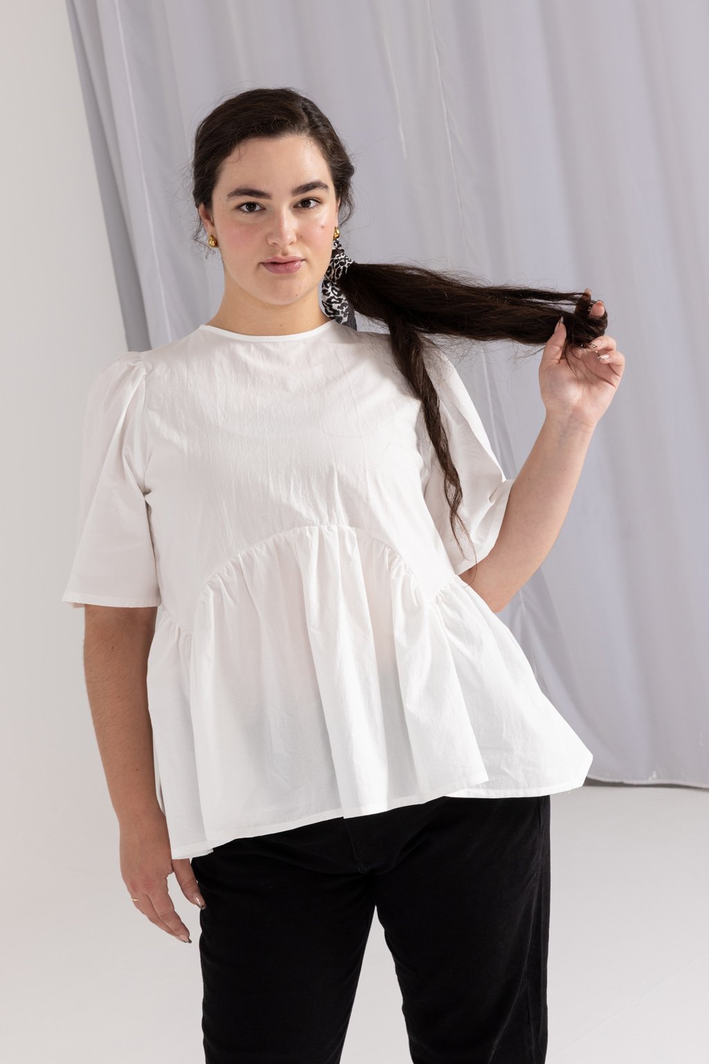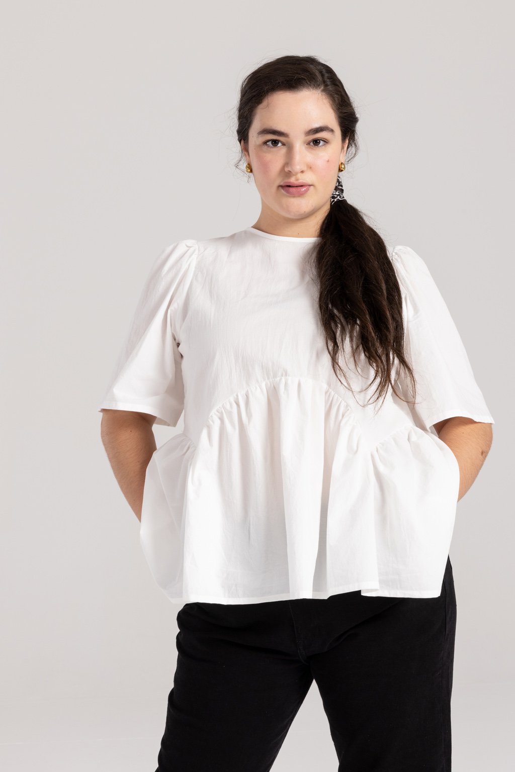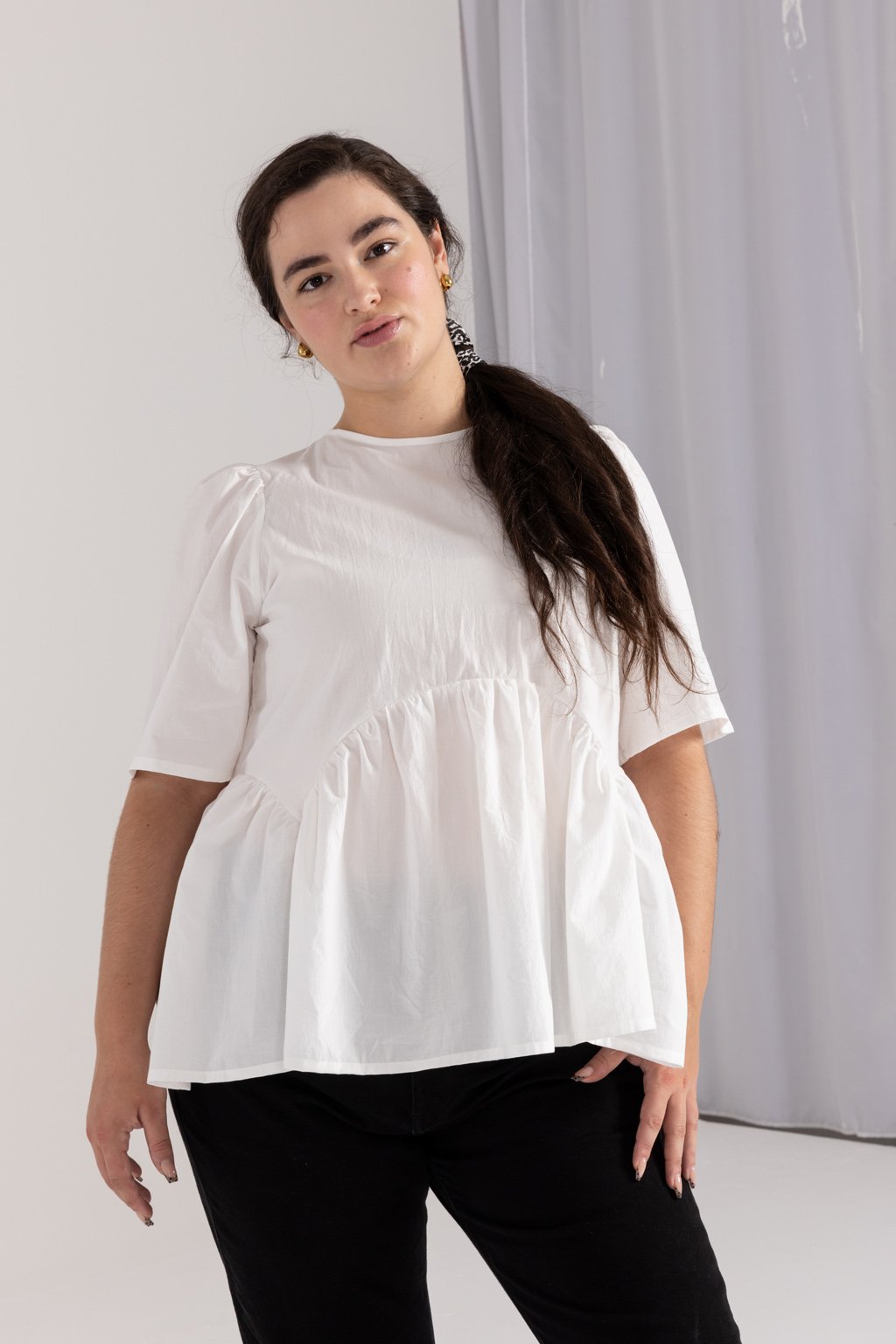 Lehká bavlněná halenka BETTY z bavlny je romantickým kouskem, do kterého se zamilujete. Tato halenka má elegantní střih, který je přestřižený pod prsy, což dodává siluetě jemnou linii a klade důraz na pohodlí. Řasený volán přidává halence hravý a ženský nádech, zatímco nařasené balónové rukávy, poskytují maximální pohodlí. Kvalitní, prodyšný a odolný materiál je nenáročný na údržbu. Kulatý výstřih je na zadní straně zakončený kapkou se zavazováním na mašli. Můžete si vybrat z barevných provedení ve smetanové bílé, šeříkové růžové nebo tmavě šedé.
