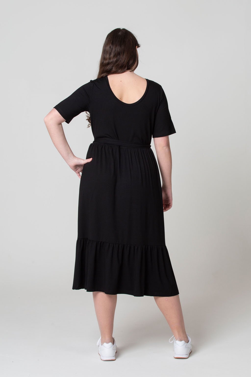 Objevte variabilitu a styl s šaty ELLA. Tyto dlouhé úpletové šaty v midi délce vás okouzlí jednoduchým vrškem a nařasenou sukní s volánky, které vytvářejí více siluet díky různému řasení v předním a zadním díle. Unikátní design umožňuje nosit šaty výstřihem dopředu nebo dozadu – stačí je otočit a máte nový vzhled. Vysoce kvalitní viskózový úplet je pohodlný a pružný, zatímco skořicově hnědá barva dodává šatům nadčasovou eleganci. Přiložený pásek vám umožní šaty přepásat a zdůraznit pas. Ideální pro jakoukoli příležitost, tyto šaty se snadno udržují a přizpůsobí se vašemu stylu.