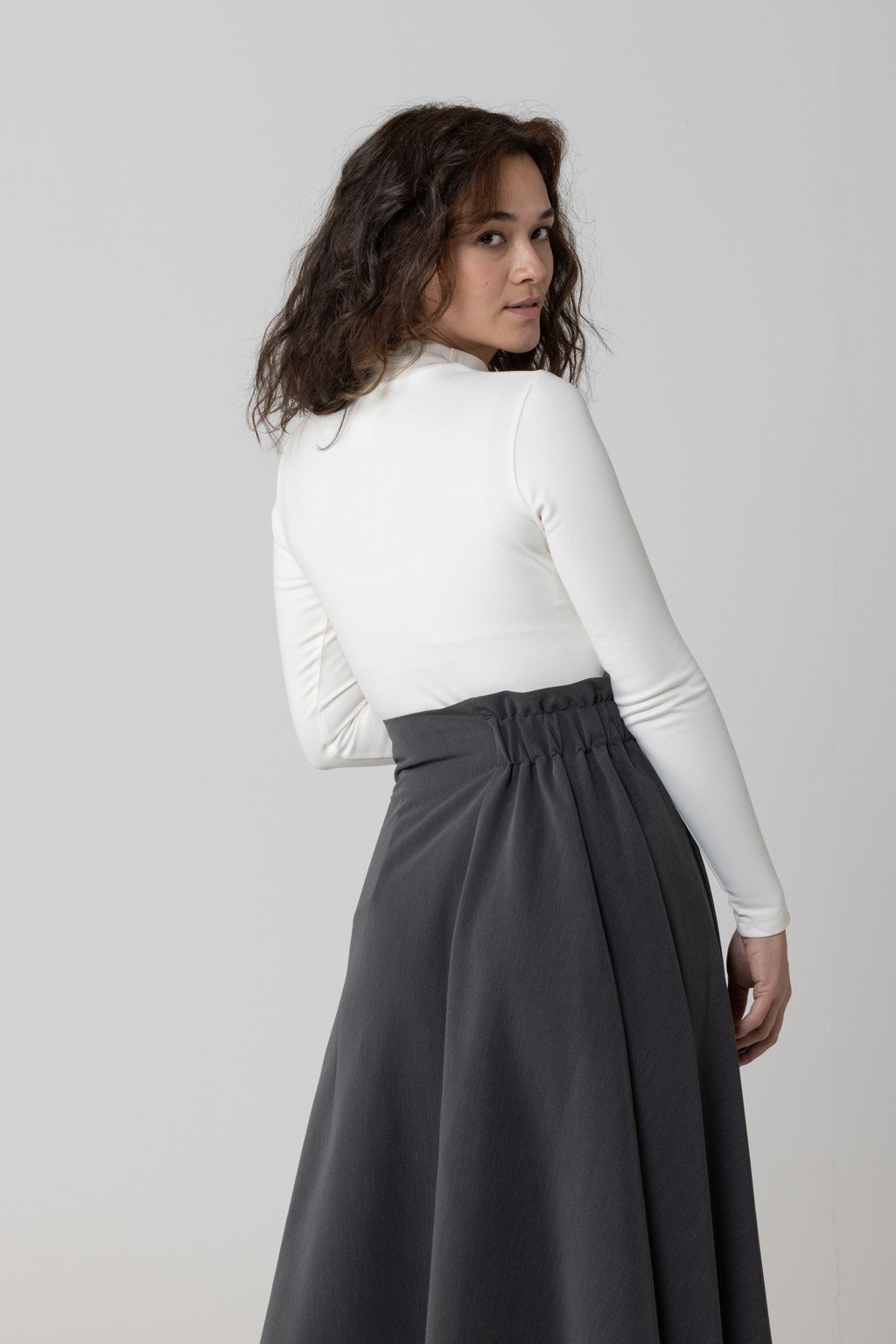 Dámský top se stojáčkem JULIE je ideální na vrstvení a skvěle se kombinuje s kalhotami a sukní. Velmi teplý materiál s vysokým podílem viskózy je příjemný na těle a díky polyesteru krásně drží tvar s je po vyprání stálí. Obepnutý střih krásně tvaruje křivky, ale rýsujícího prádla se bát nemusíte, látka je dostatečně pevná. Dlouhý rukáv a stojáček, tento rolák oceníte pro svoji univerzálnost. Vyberete z černé, krémově bílé, bordó a jasně červené.
