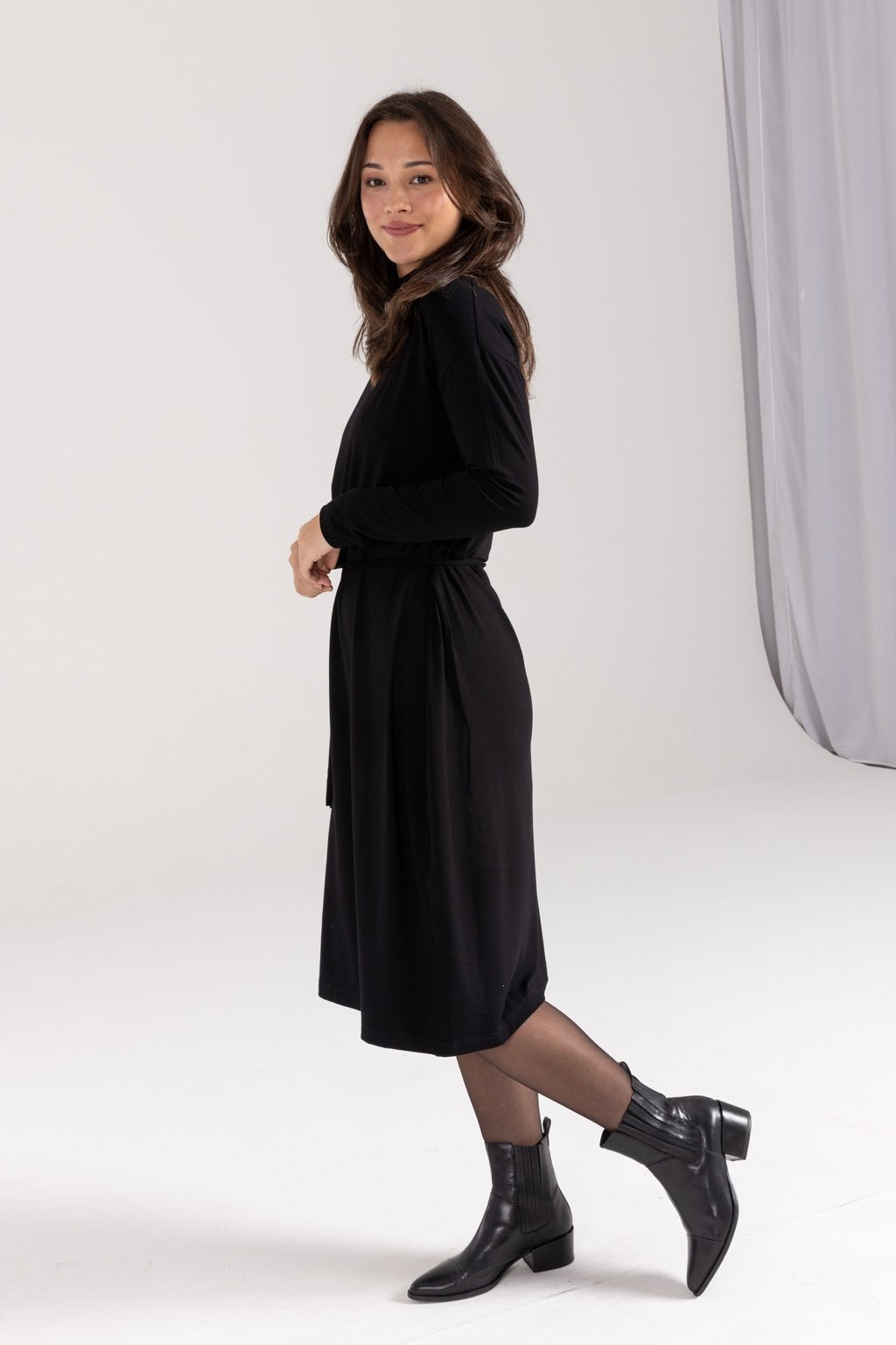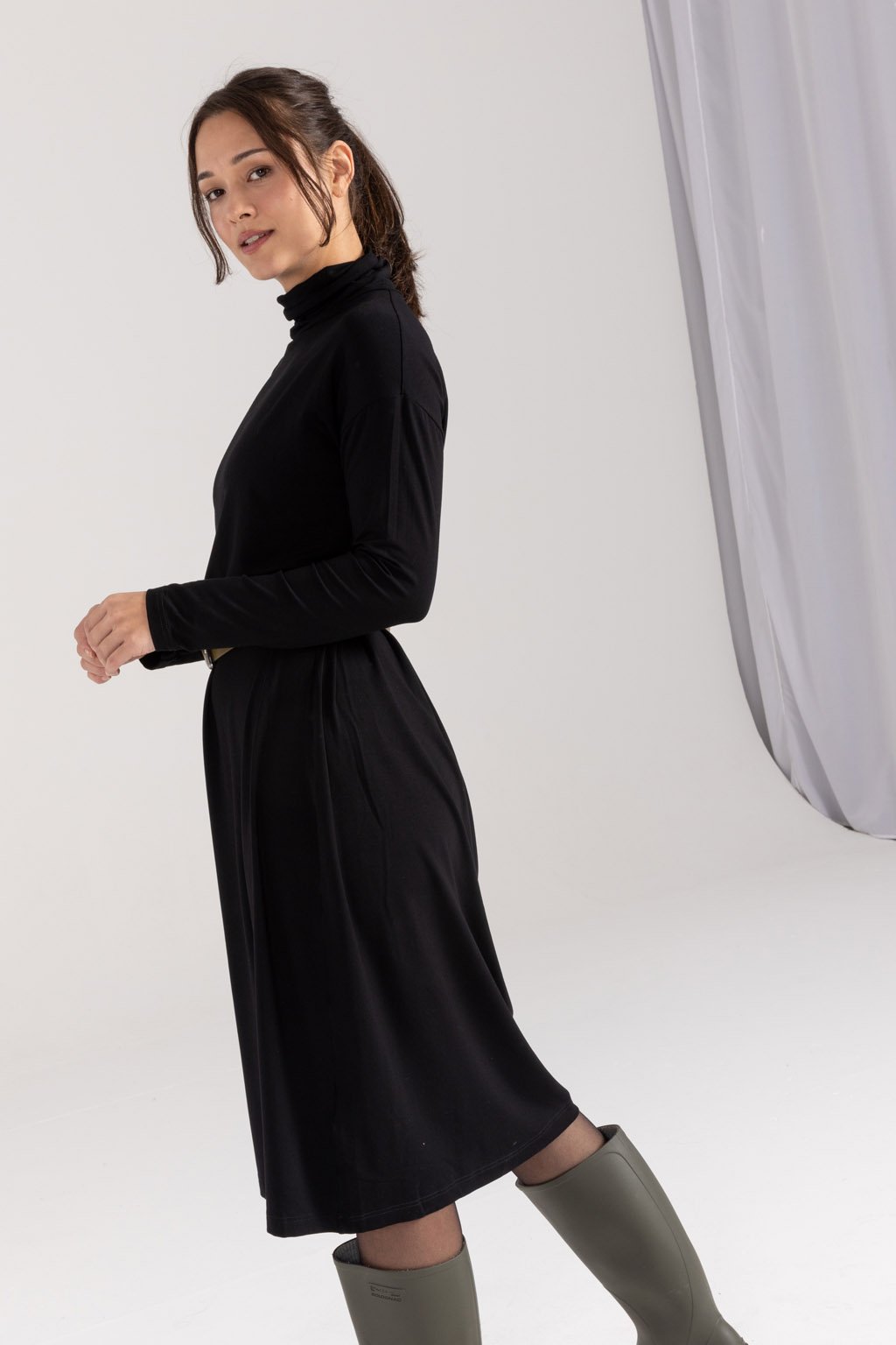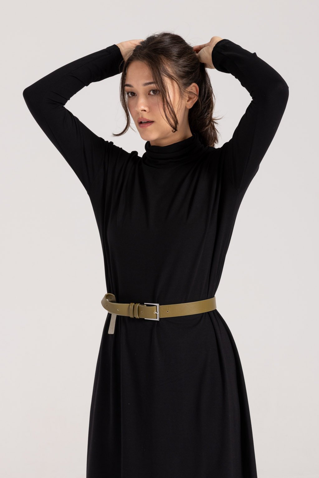 Tyto dlouhé úpletové šaty KARLA s vysokým rolákem vás zahřejí. Mají volnější pohodlný střih, dlouhý úzký rukáv a upravit je můžete volně přidaným páskem. Midi délka se hodí i na formálnější příležitosti, stačí doplnit vhodnými doplňky. Ušity ve čtyřech velikostech s velkorysým rozsahem, vhodné na menší postavu i pro plnoštíhlé.Vyberte si z olivově zelené, královské modré a klasické černé.