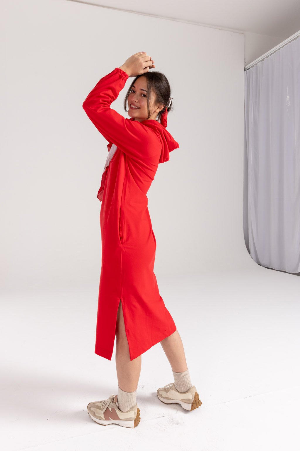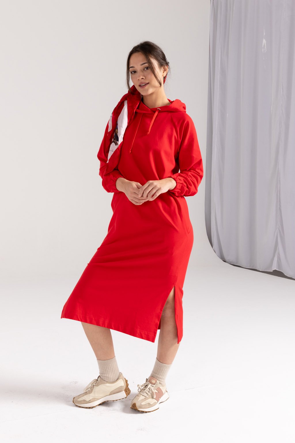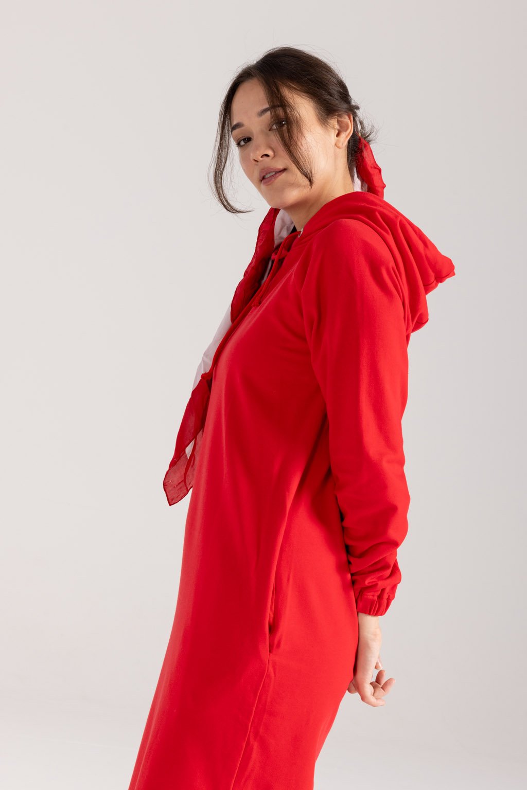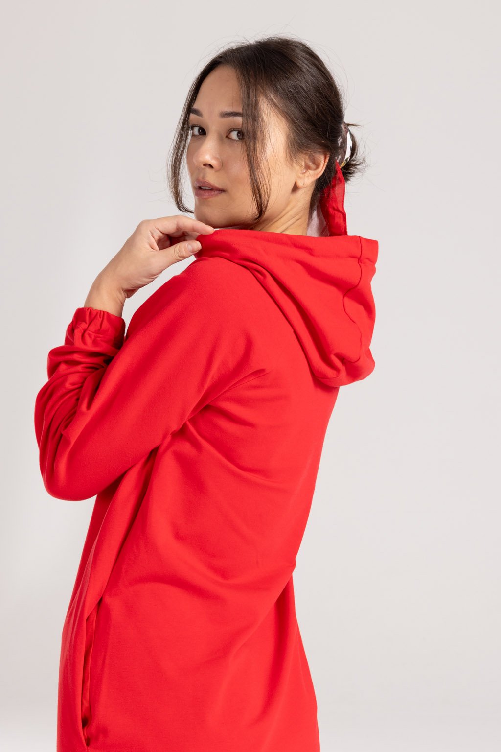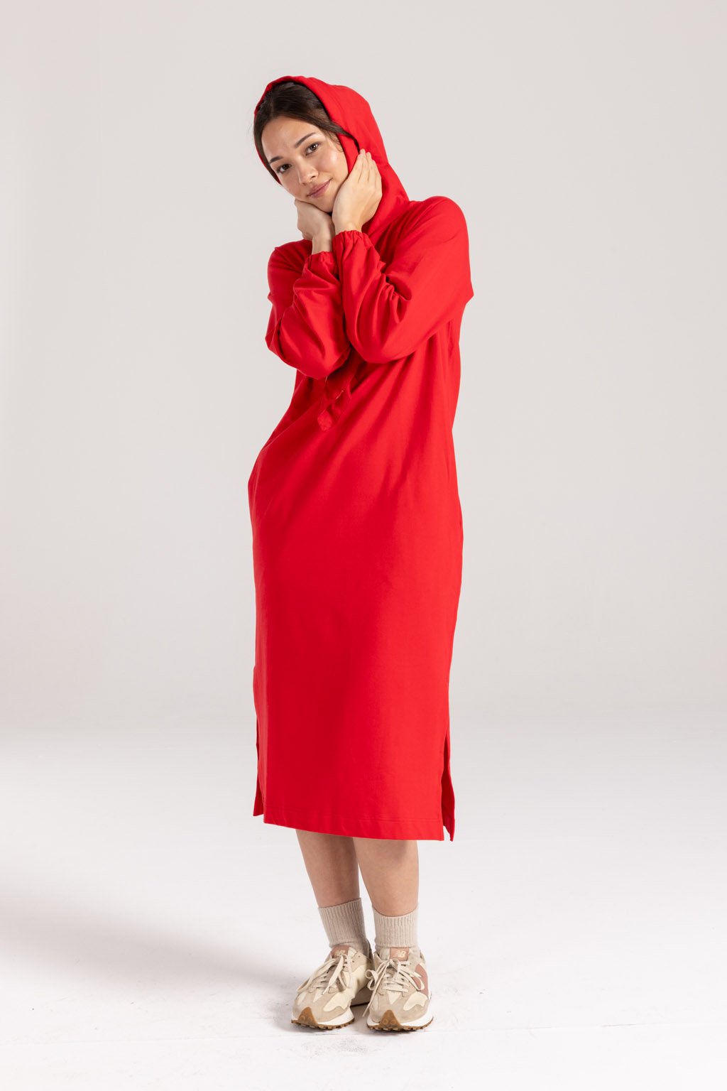 Kiki jsou ideální dámské šaty do sychravých dní. Mikinové aty ušité z hřejivé bio bavlny v oversize střihu, do kterého se pohodlně zachumláte. Kapuce, midi délka a kapsy ve švu dotváří neformální look ve stylu street wear. Siluetu můžete zvýraznit řaseným páskem na gumu. Šaty, které vám vydrží nejednu sezónu. Vyberte si z provedení v béžové nebo černé.