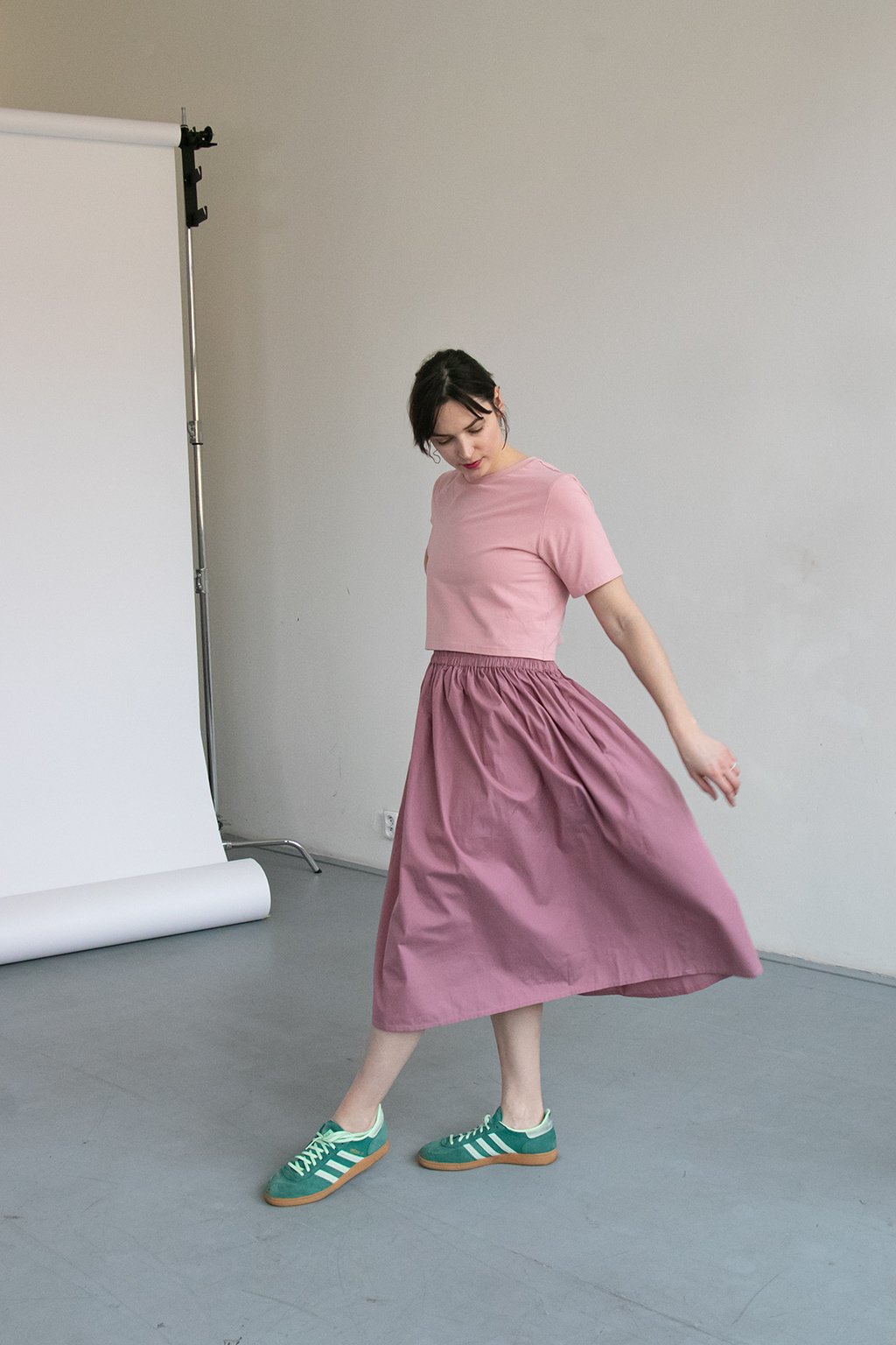 Lehká, nadčasová a s příběhem. LOLA bavlněná sukně vznikla z dead stock metráže, po výrobě šatů Marta. Ušita je ze 100% organické bavlny, která je příjemná na dotek, prodyšná a ideální pro každodenní nošení. Díky lehkosti materiálu se sukně krásně pohybuje při chůzi a působí přirozeně elegantně. Praktickým detailem jsou skryté kapsy ve švu, které nenarušují siluetu a zároveň dodávají pohodlí při nošení. Každý kus je limitovaný podle dostupnosti metráže – právě to dělá z Loly výjimečný kousek do šatníku.