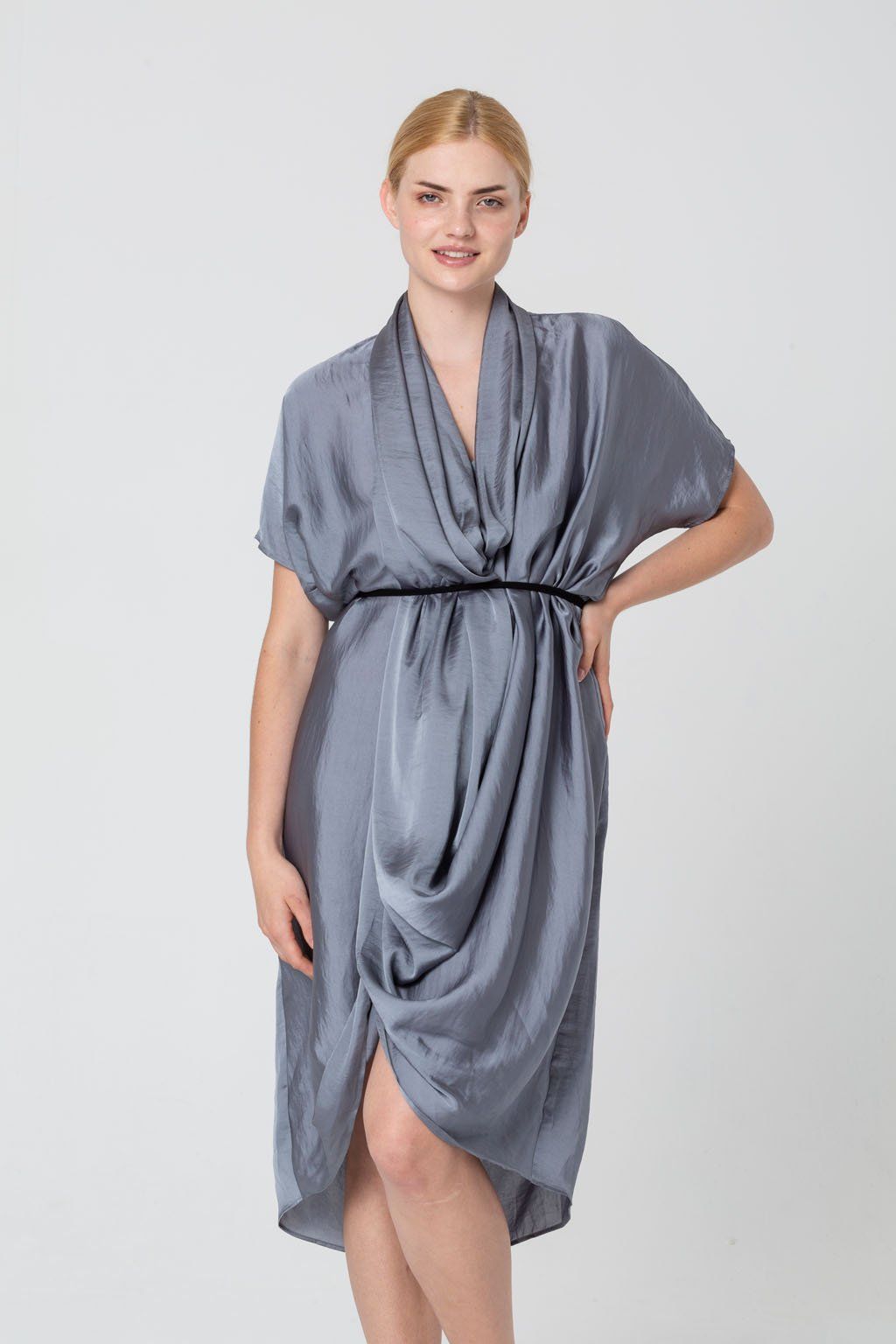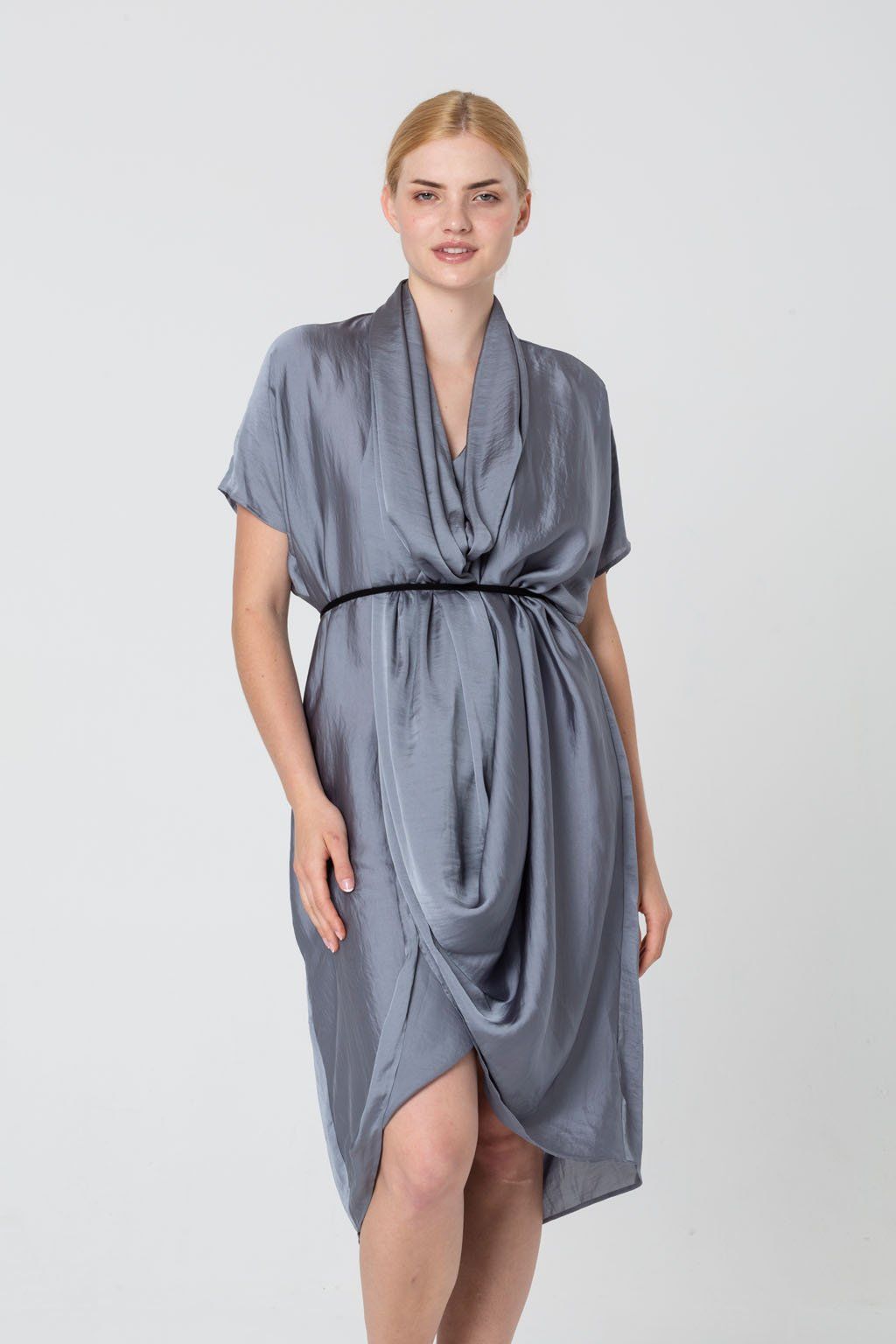 Společenské šaty RITA mnoha variací. Volnější střih s nabíranou vodou v předním díle doplňuje pásek na gumu se sponou, který můžete zapnout na různých místech nebo nechat bez....
