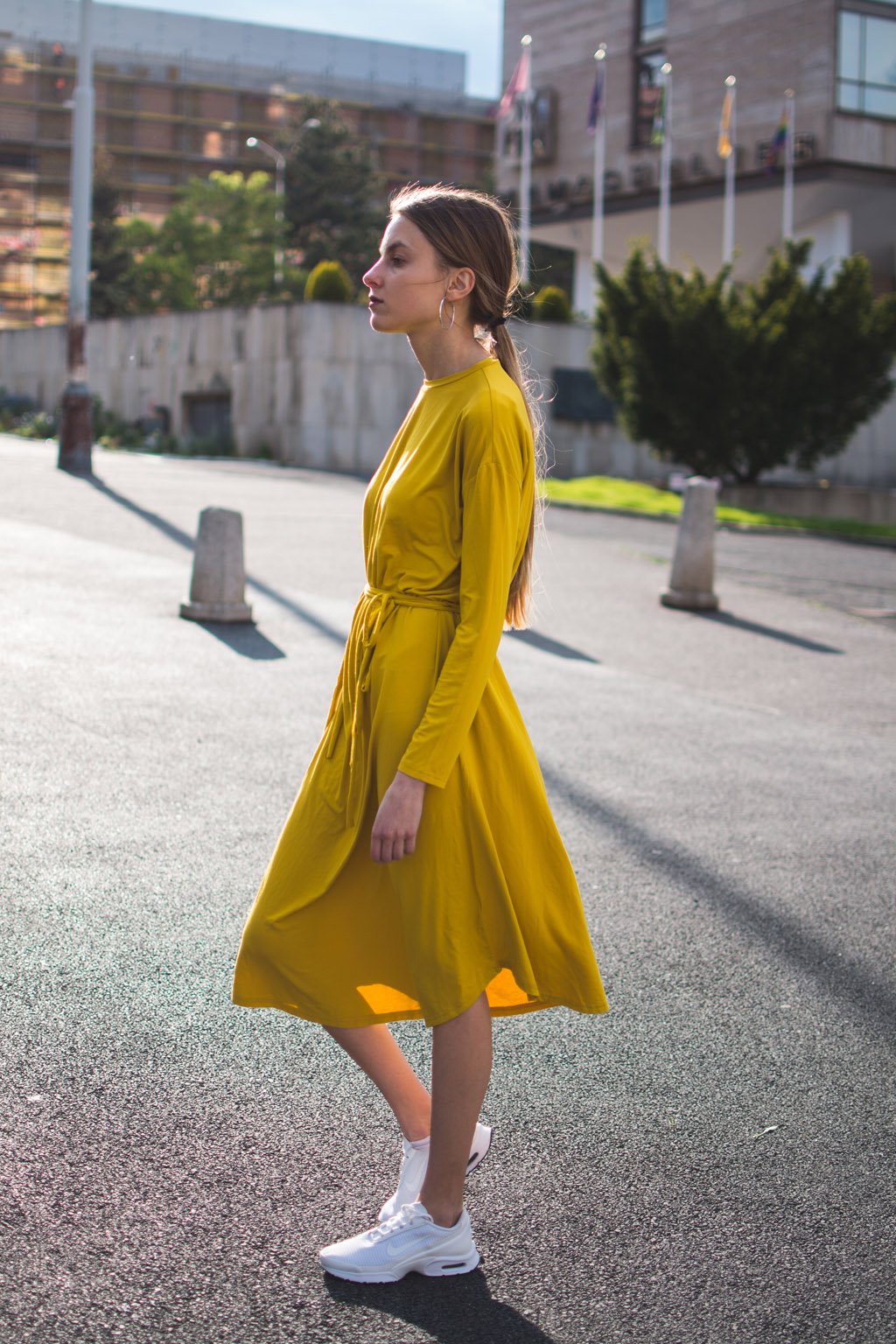 NAĎA jsou dlouhé oversize šaty s řasením na sukni, co působí mladistvě. Hravě kombinují tkanou látku s úpletovým topem z viskózy. Všité kapsy pro vaše maximální pohodlí. Lichotí...