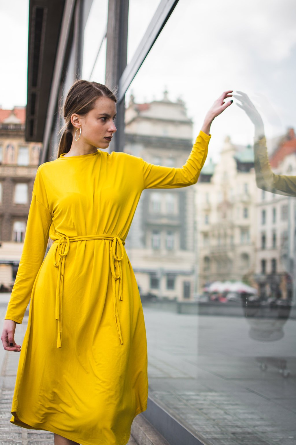 Čtyři všité pružné pásky umožňují tyto dámské variabilní šaty zavázat na několik způsobů. Přitom mají minimalistický střih jednoduchých linií. Úpletové šaty THEA s dlouhými úzkými rukávy se stanou hitem vašeho šatníku napříč sezónami, ale hlavně jako podzimní a zimní šaty. Vyberte si z okrové, antracitově šedé a černé.