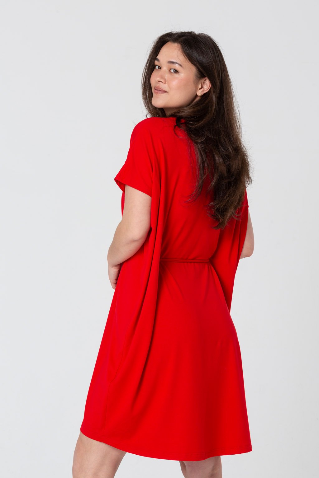 ZOE jsou krátké variabilní šaty, které díky dvěma šňůrkám můžete jednoduše proměňovat. Uvažte je dozadu, dopředu, na boky nebo asymetricky. Úplet z viskózy krásně splývá, díky přepadlým rukávům mají velkorysý střih a jsou maximálně pohodlné. Doporučujeme kombinovat s našimi designovými legínami, nebo nechat vyniknout samostatně. Vyberte si z provedení v blankytně modré, jasně červené a klasické černé.